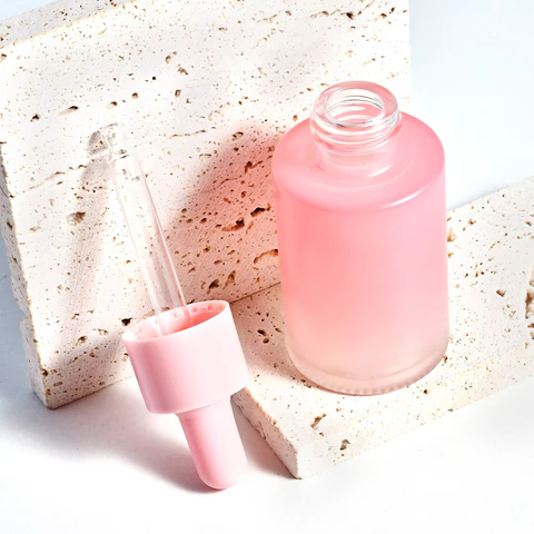 30ml高級空透明ピンクガラスフラットスクエアエッセンシャルオイルドロッパーボトル