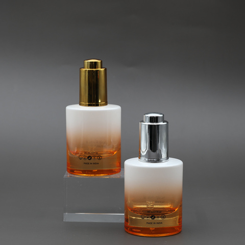 30mlスライバーゴールデンラグジュアリーフラットショルダースキンケア空のエッセンシャルオイルボトルクリアグラスフロストドロッパーセラムボトル