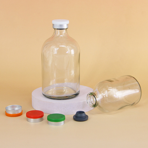 医薬品包装医療用途無料成形シリンダー形状50ml 100mlゴム製ストッパー付きアンバーガラスバイアル
