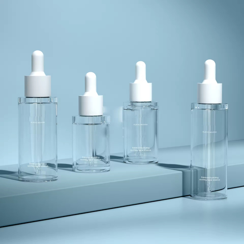 カスタムロゴフラットショルダーガラス血清ボトル1オンス30ml耐久性のあるヘイルオイル化粧品エッセンシャルオイルボトルプレス付きボットンドロッパー付き