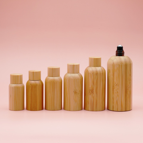 ローラーボトル10-100mlカスタムロゴ丸型竹ガラス製スチールボール付き